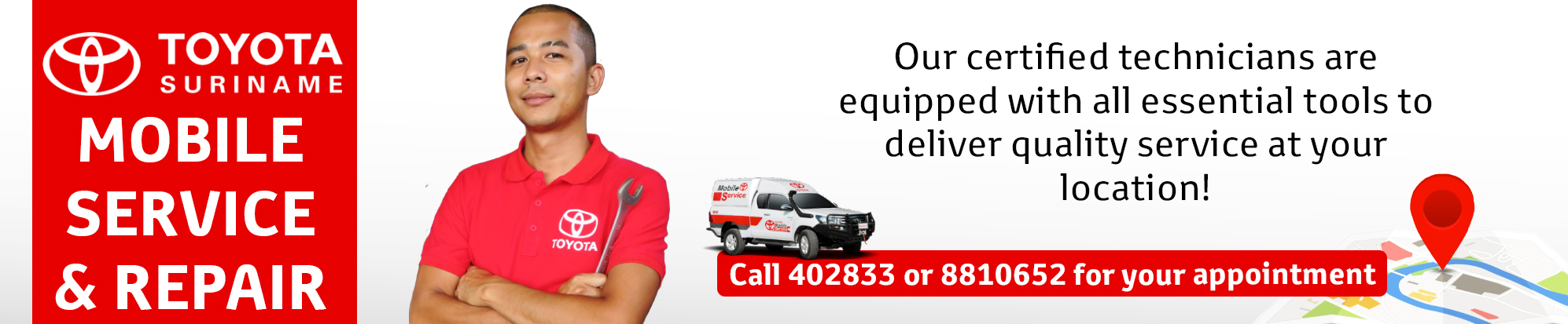 At Toyota Suriname, car service and minor repairs are made easier for you with our mobile service unit. Our goal is to make sure your vehicle is performing at its best.
